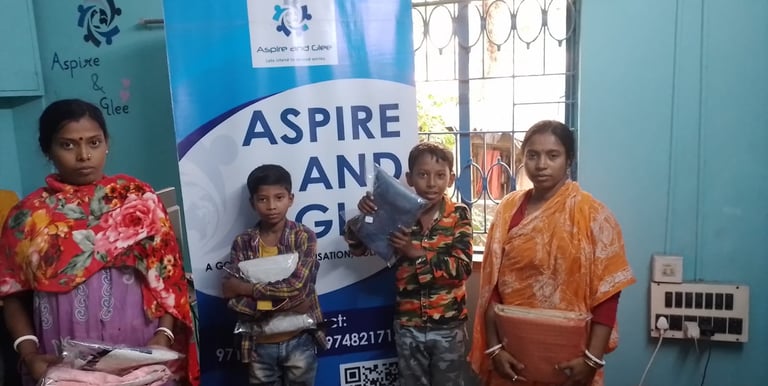 In 2021, Aspire and Glee launched Kolkataโs first Free Clothes Bank โ a revolutionary step in community service. Through this initiative, we collect, sort, clean, and package gently used clothes to distribute to people in need โ from daily wage earners and street children to disaster survivors.